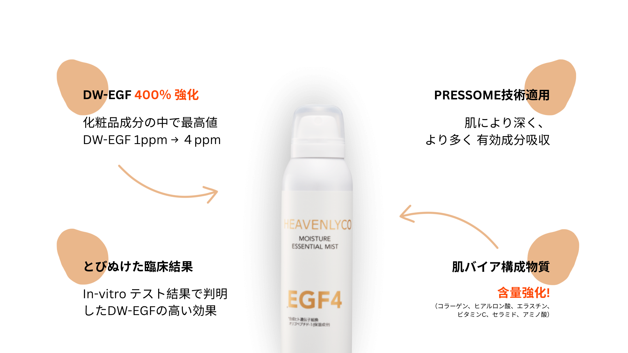 高分子タンパク質成分であるEGFをOpen woundではなく、一般的な皮膚に使用する場合、吸収力を高めて安定性を最適化するため、リポソーム技術を適用(毛穴の1/100サイズ)肌に優しく効果的に吸収されて皮膚に迅速な効果を与えます。